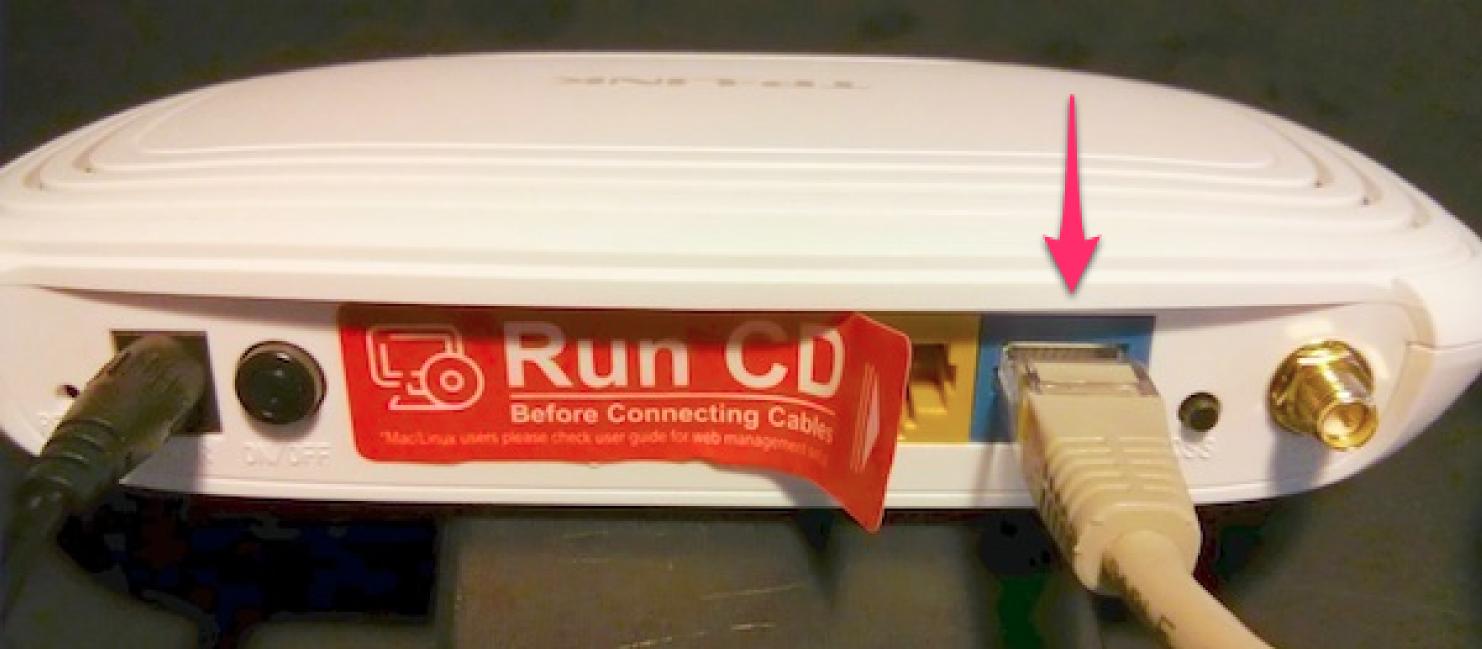 Nun kannst du den Knoten ans Internet anschließen. Dazu musst du das LAN-Kabel auf der Rückseite deines Knoten umstecken: Bisher hattest du das Kabel in der gelben Buchse. Jetzt muss es in die blaue. Verbinde dann noch das andere Ende des Kabels mit deinem Internet-Router und dein neuer Freifunkknoten ist am Netz. (Falls du den Router am Gastzugang deines Internet-Routers anschließt, achte darauf, dass der Mesh-VPN Port 11237 für UDP offen ist)